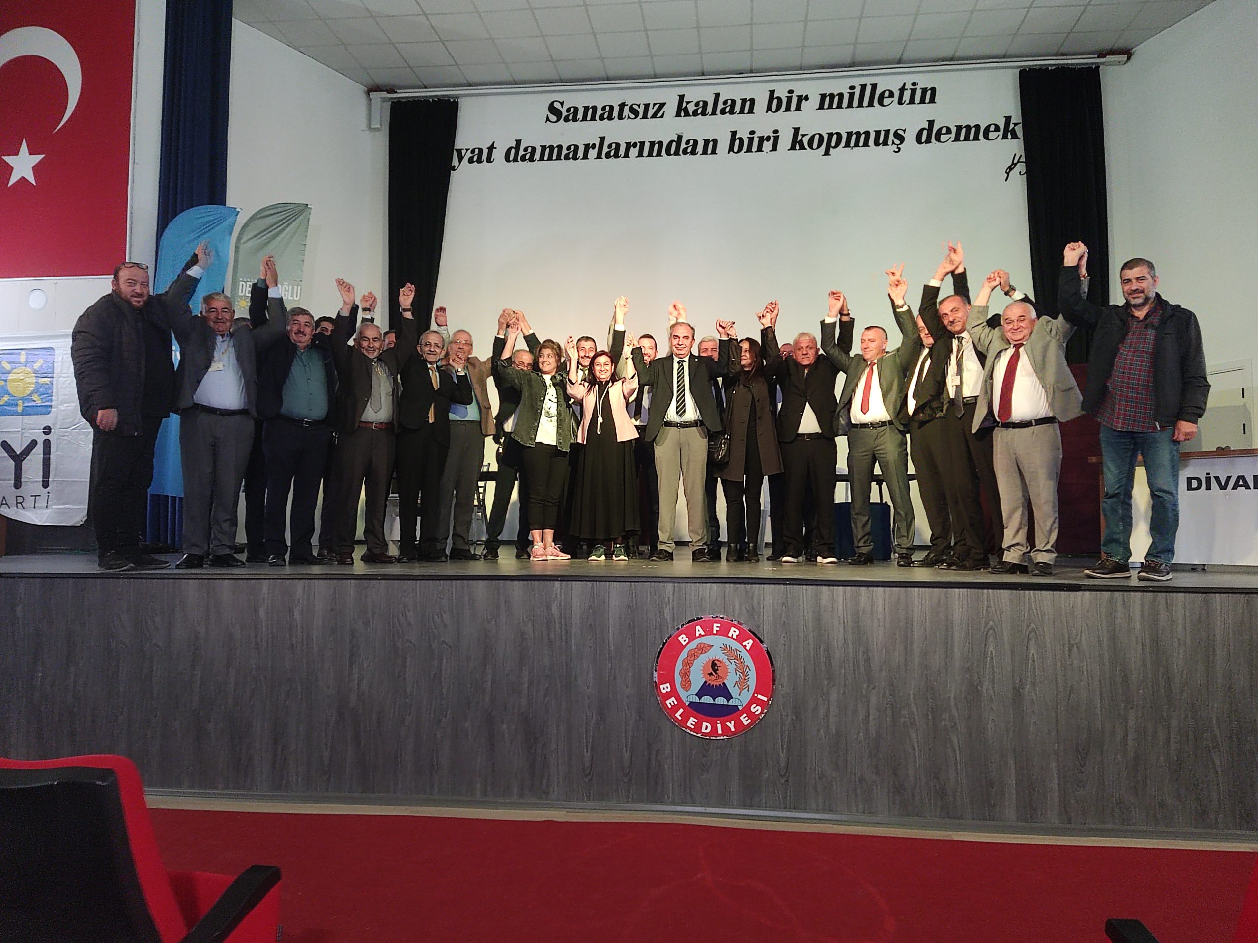 İYİ Parti Bafra İlçe Teşkilatının 4.Olağan Genel Kongresinde Tek liste tek aday olarak seçime giren mevcut Başkan Aydoğan Yılmaz girdiği seçimde kullanan 106 oyun 2’in geçersiz sayıldığı 104 geçerli Üyelerin oyuna alarak tekrar seçilerek 3 dönem başkanlığına seçilmiş oldu.