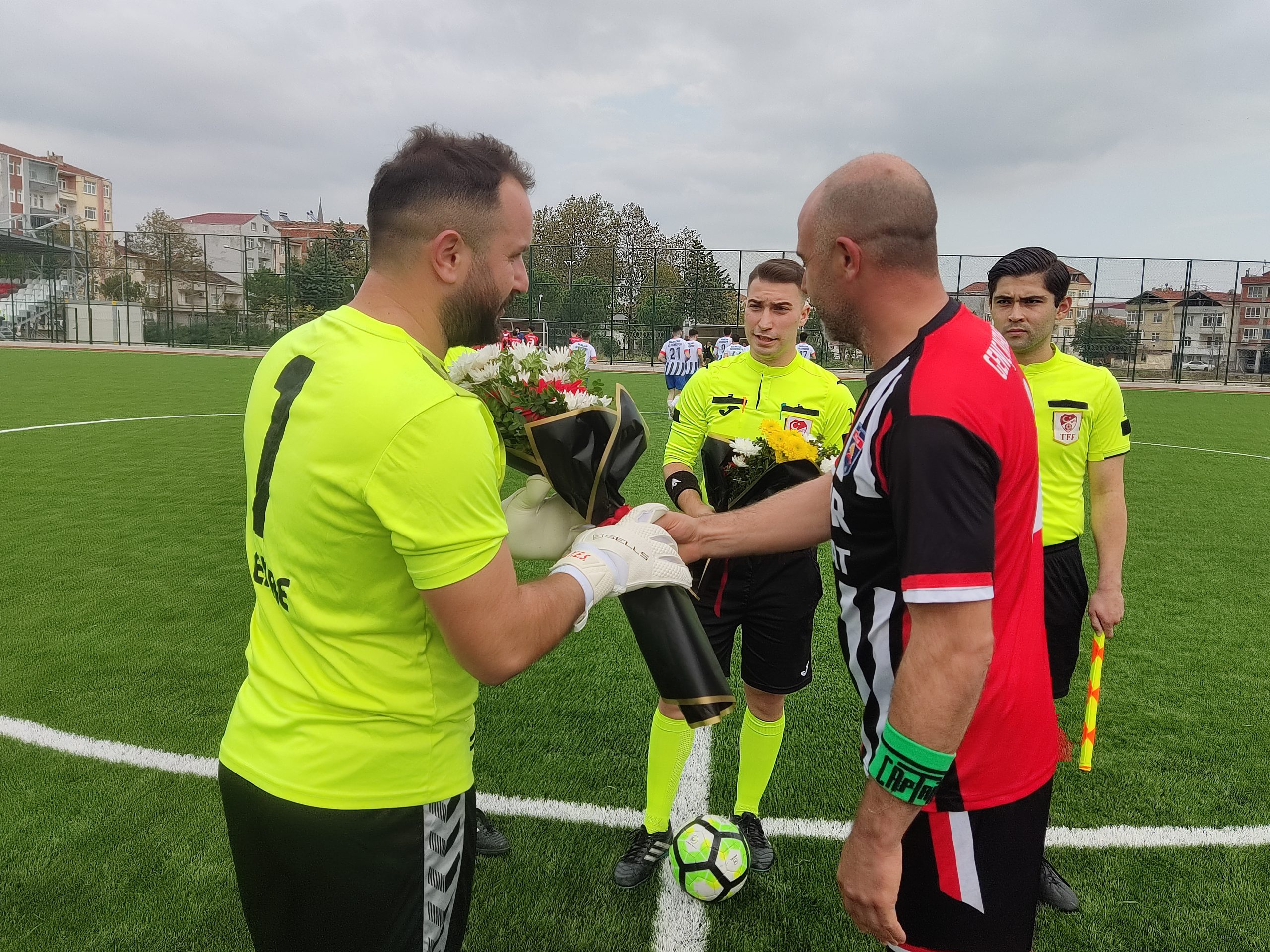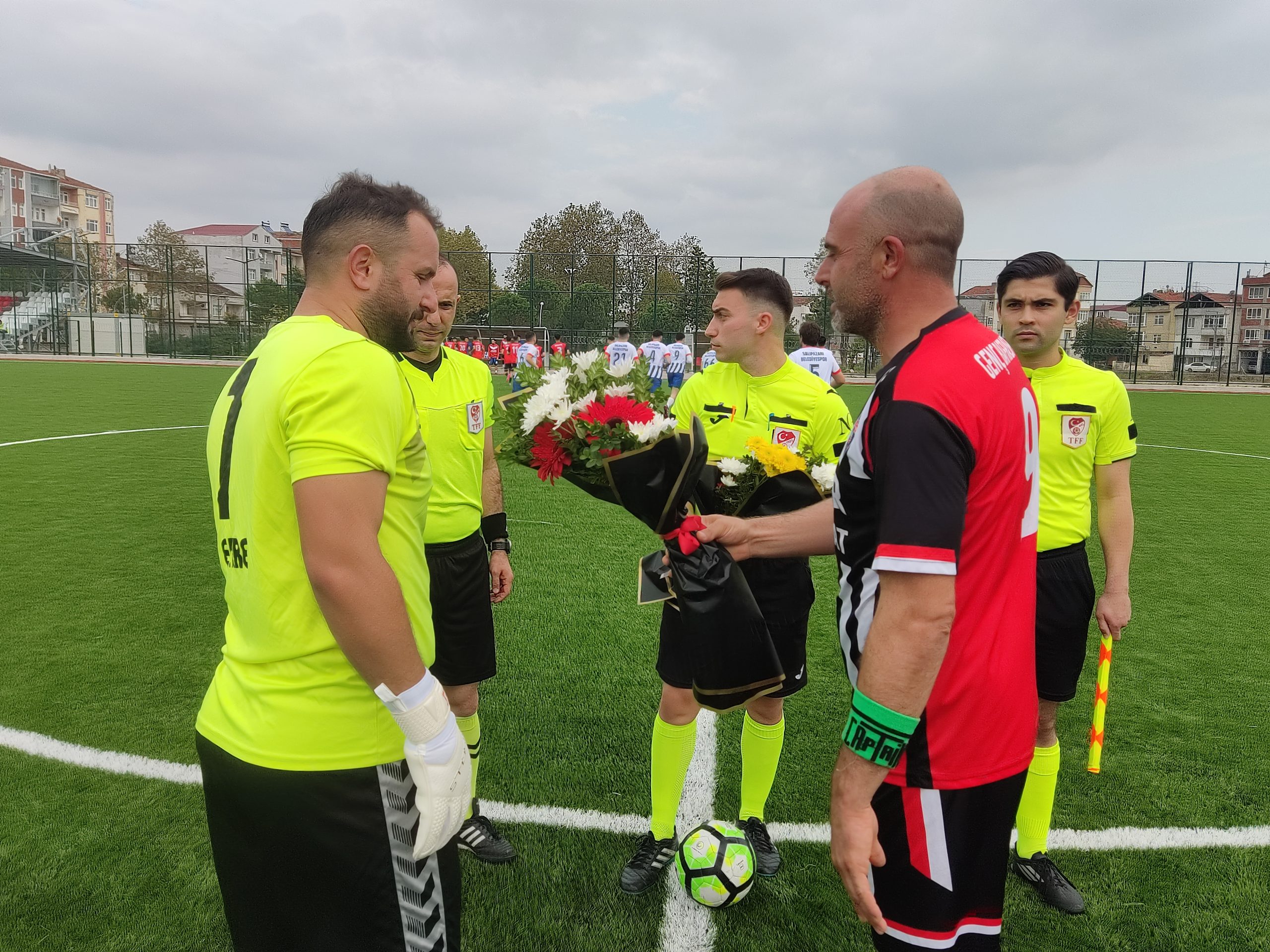 Maç öncesi Genç Bafraspor takım kaptanı Orhan Şahin, Süper Amatör (SAL) liginin başlaması mümasebeti ile Salı Pazarı Belediyespor takım kaptanı Tunus’a ve hakem üçlüsüne çiçek taktim etti.