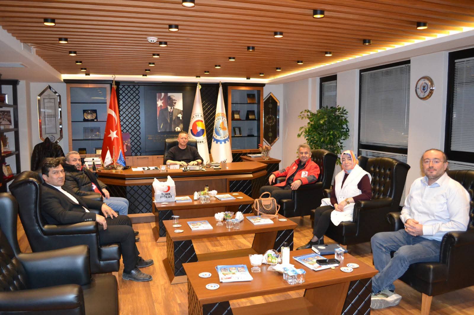 Türk Kızılay Bafra Şube Başkanı Şerafettin Şahin, Başkan Yardımcısı Himmet Şimşek, Yönetim Kurulu Üyesi Hatice Çakıroğlu, Bafra Ticaret ve Sanayi Odası Yönetim Kurulu Başkanı Serdal Sefa Kocabaş’ı makamında ziyaret etti.
