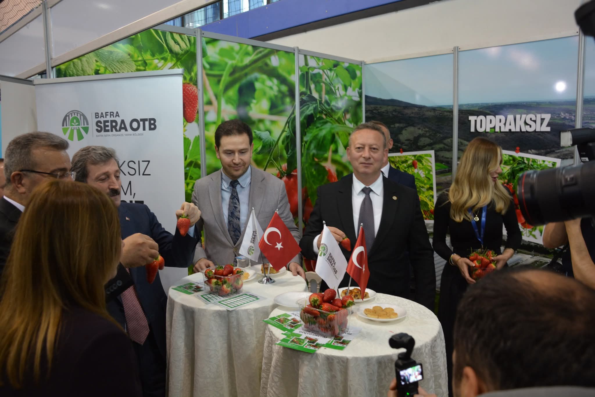 Fuarda, Bafra Sera Organize Tarım Bölgesi’nde üretilen çilekler de misafirlere ikram edildi. Çalışma ve Sosyal Güvenlik Bakan Yardımcısı Faruk Özçelik, Samsun Valisi Orhan Tavlı ve OMÜ Rektörü Prof. Dr. Fatma Aydın’a yapılan çilek ikramı büyük beğeni topladı.