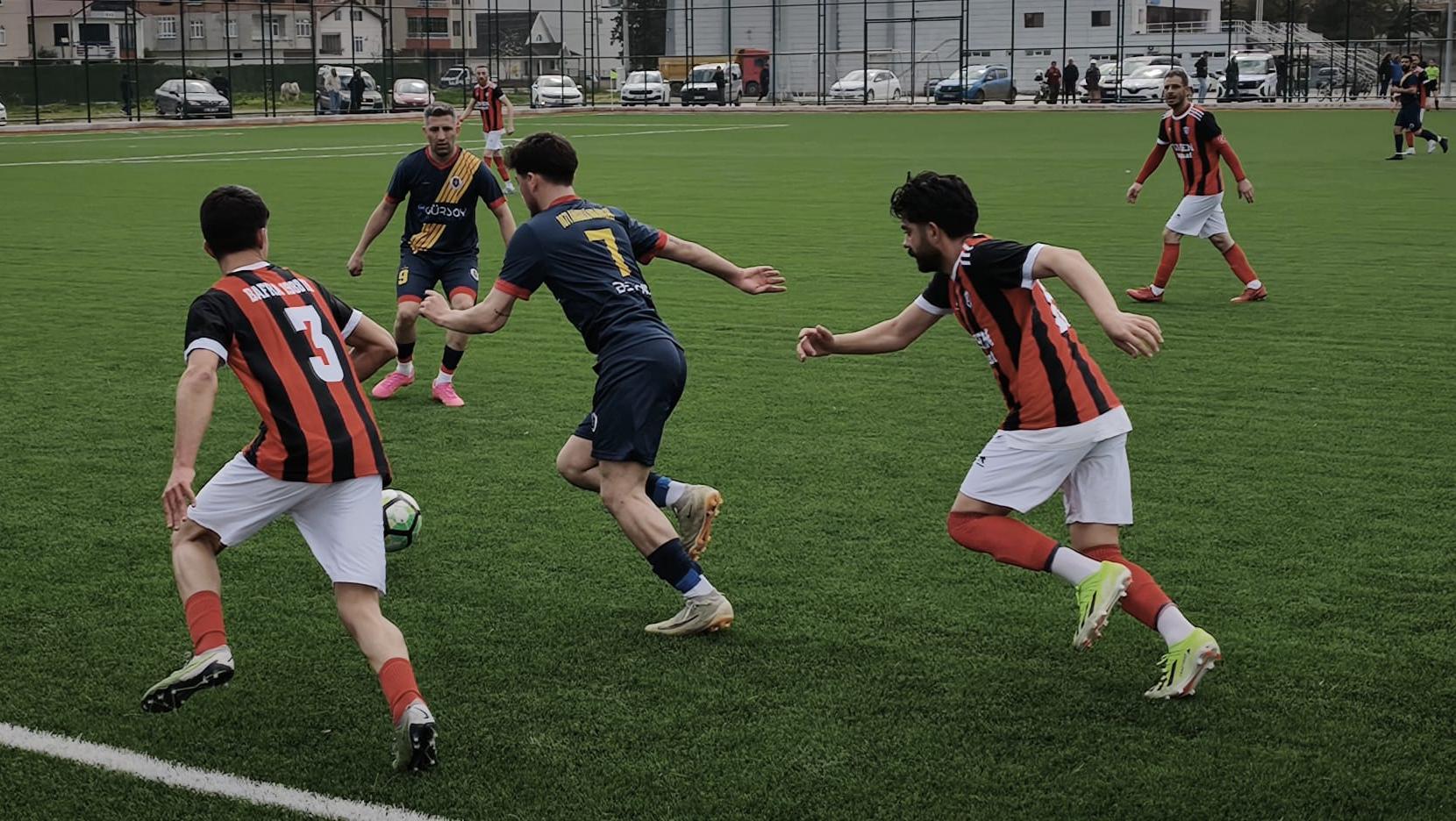 26 dakika da gelişen Bafra 1988 FK atağında takım kaptanı Emre Yakın’ın uzaktan vuruşun da meşin yuvarlak top kalecide kaldı.
